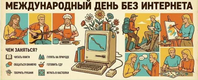 Этот день – не просто призыв к отказу от гаджетов. Это осознанный выбор, направленный на: Переосмысление роли Интернета в нашей жизни: Насколько мы зависимы от сети? Какие аспекты нашей жизни страдают от чрезмерного онлайн-присутствия? Восстановление баланса: Найти гармонию между цифровым и реальным миром, уделяя больше внимания живым взаимодействиям, хобби и саморазвитию. Укрепление личных связей: Провести время с близкими, не отвлекаясь на уведомления и сообщения. Забота о здоровье: Снизить нагрузку на глаза, улучшить сон и уменьшить стресс, связанный с постоянным потоком информации. Открытие новых возможностей: Погрузиться в занятия, которые требуют полного присутствия и концентрации, будь то чтение книги, прогулка на природе или творчество. Почему это важно сегодня? В современном мире, где информация доступна мгновенно, а социальные сети стали основным каналом общения, легко потерять ощущение реальности. Мы можем проводить часы, прокручивая ленты новостей, играя в онлайн-игры или работая удаленно, забывая о простых радостях жизни: Живое общение: Улыбка друга, искренний разговор, объятия близких – эти моменты бесценны и не могут быть заменены виртуальными аналогами. Природа: Прогулка в парке, созерцание закатов, звуки природы – все это помогает нам восстановить силы и почувствовать себя частью чего-то большего. Творчество и хобби: Рисование, музыка, рукоделие, спорт – занятия, которые приносят удовольствие и развивают наши таланты, часто отходят на второй план из-за постоянного отвлечения на цифровой мир. Самопознание: Время, проведенное в тишине и размышлениях, помогает нам лучше понять себя, свои желания и цели. Как провести Международный день без Интернета? Этот день – прекрасная возможность для экспериментов и открытия новых граней жизни. Вот несколько идей: Планируйте заранее: Сообщите своим близким и друзьям о своем намерении провести день без Интернета, чтобы избежать недопонимания. Отключите уведомления: Полностью отключите интернет на всех своих устройствах. Займитесь активностями, которые не требуют сети: Проведите время с семьей и друзьями: Устройте пикник, поиграйте в настольные игры, посмотрите старые фотографии. Погрузитесь в чтение: Возьмите в руки книгу, которую давно хотели прочитать. Займитесь творчеством: Рисуйте, пишите, играйте на музыкальных инструментах, занимайтесь рукоделием. Проведите время на природе: Отправьтесь на прогулку в лес, парк или просто насладитесь свежим воздухом. Займитесь спортом: Сходите в спортзал, пробегитесь, займитесь йогой. Приготовьте вкусный ужин: Экспериментируйте на кухне, используя рецепты из кулинарных книг. Наведите порядок дома: Разберите шкафы, организуйте пространство – это может быть удивительно медитативным занятием. Посетите музей или выставку: Откройте для себя новые культурные пространства. Просто отдохните: Позвольте себе расслабиться, поспать подольше, помедитировать. Преимущества цифрового детокса: Регулярные перерывы от Интернета могут принести ощутимую пользу: Улучшение концентрации и продуктивности: Без постоянных отвлечений вы сможете лучше сосредоточиться на задачах. Снижение уровня стресса и тревожности: Уменьшение информационного шума способствует душевному спокойствию. Укрепление отношений: Живое общение становится более глуб