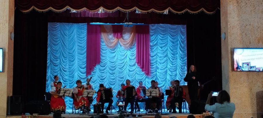 Открыл концерт оркестр русских народных инструментов(рук. Андрющенко П.А. и С.В ) с замечательным попурри на темы русских народных песен, которое стало настоящим музыкальным подарком и объединило разнообразные мелодии в одно целое и "Эстрадная мозайка" автор А.Тарануха. На сцене блистали хореографические коллективы «Засосенские жемчужинки»(рук.Перкрестова К.А.) с композициями «Шалунишки», «Чибатуха», «Топотуха» и хореографический коллектив «Созвездие»(рук.Кириллова М.И.) со стилизованным номером «Пригудки». Неповторимую атмосферу создал талантливый музыкант Широких Захар исполнил "Чардаш" обр.Н.Ризоля (рук.Андрющенко П.А.). Солисты хорового отделения Лиза Маркова исполнила яркую песню "Артистка", вокальные ансамбли «Фантазия» среди песню" Добрая песенка" и «Детские секреты» пели "В ритме музыки" (рук.Майковская Г.С.) порадовали своими прекрасными голосами, исполнив знакомые и любимые песни. В фоей зала разместилась выставка наших талантливых художников под руководством Молчановой Л.Н. по теме "Моё сердце-Россия".