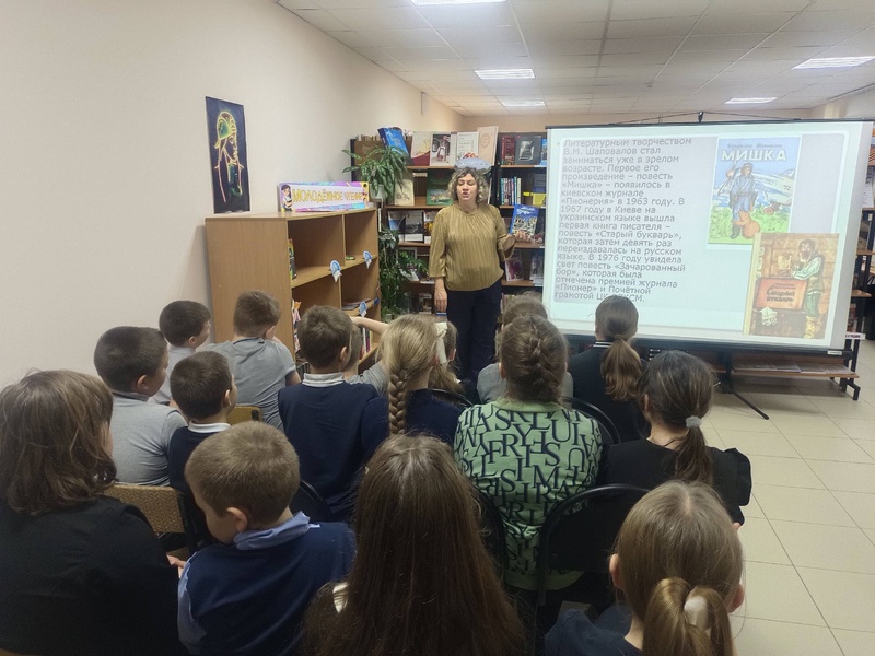 Ребята узнали о жизни и творчестве В.М. Шаповалова – белгородского писателя, учителя, участника Великой Отечественной войны и члена Союза писателей России. Он также был книгоиздателем и лауреатом многих престижных литературных премий. Юные читатели отправились в литературное путешествие по страницам книг писателя-юбиляра. Особое внимание привлекла его книга «По всей линии фронта», где повести и рассказы представлены через восприятие войны нашими меньшими братьями. Вместе с людьми, участвовавшими в боевых действиях.